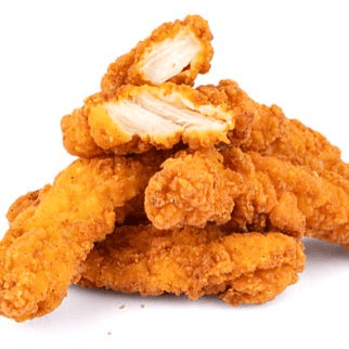 Homemade, breaded and fried strips of chicken