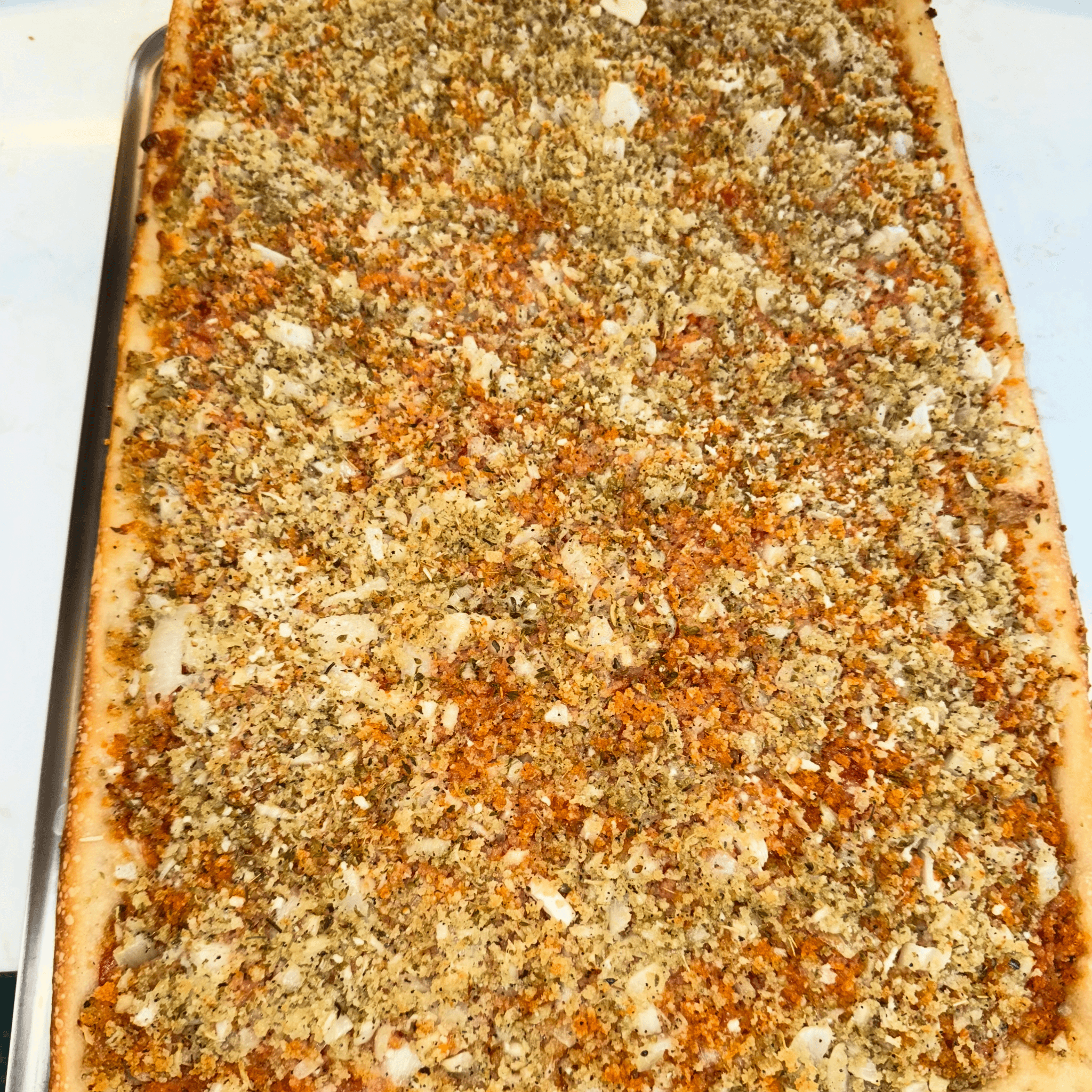 slow-cooked onions, tomatoes, cheese, oregano, and toasted breadcrumb