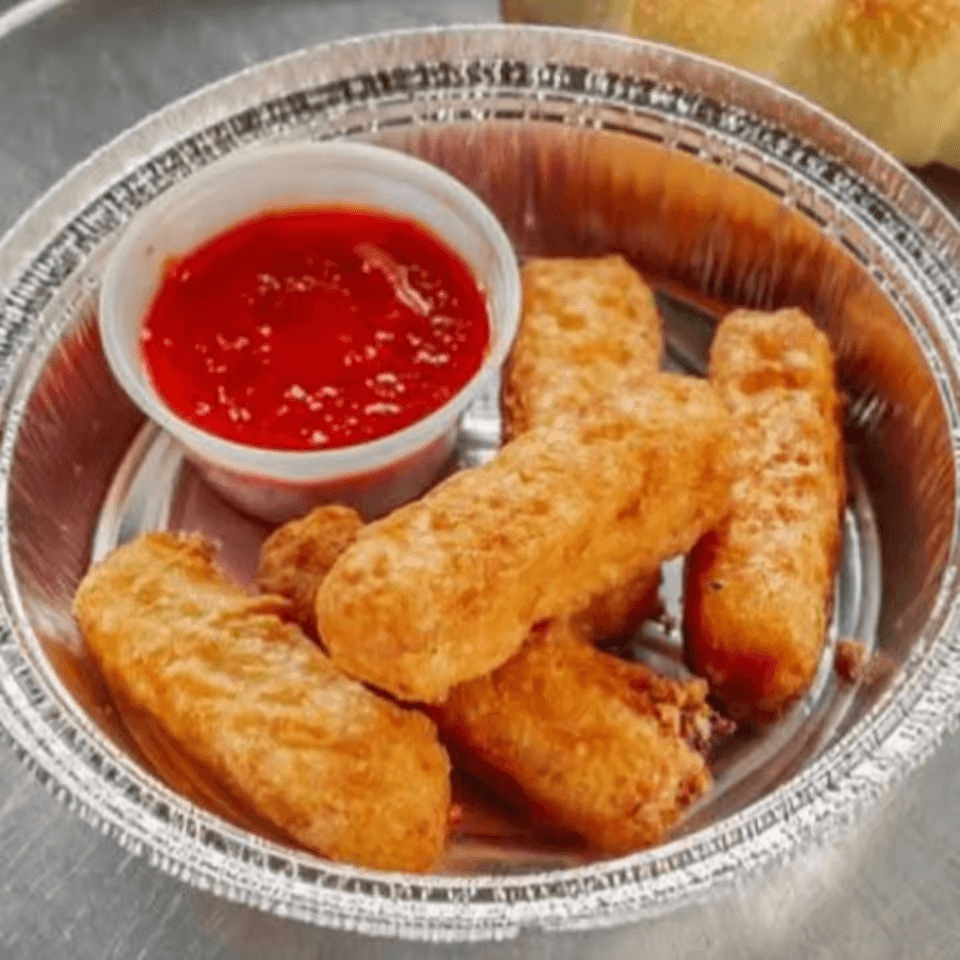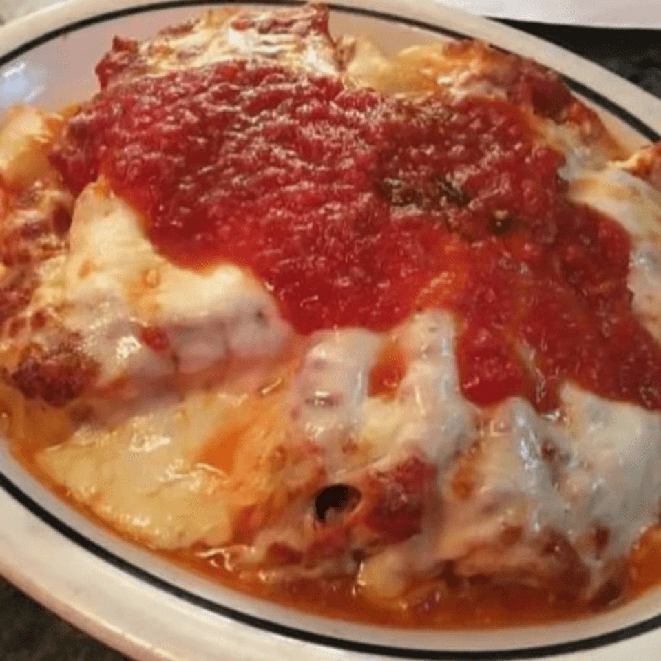 Breaded eggplant rolled with ricotta and mozzarella, baked in marinara and topped with melted mozzarella (4 pcs)
