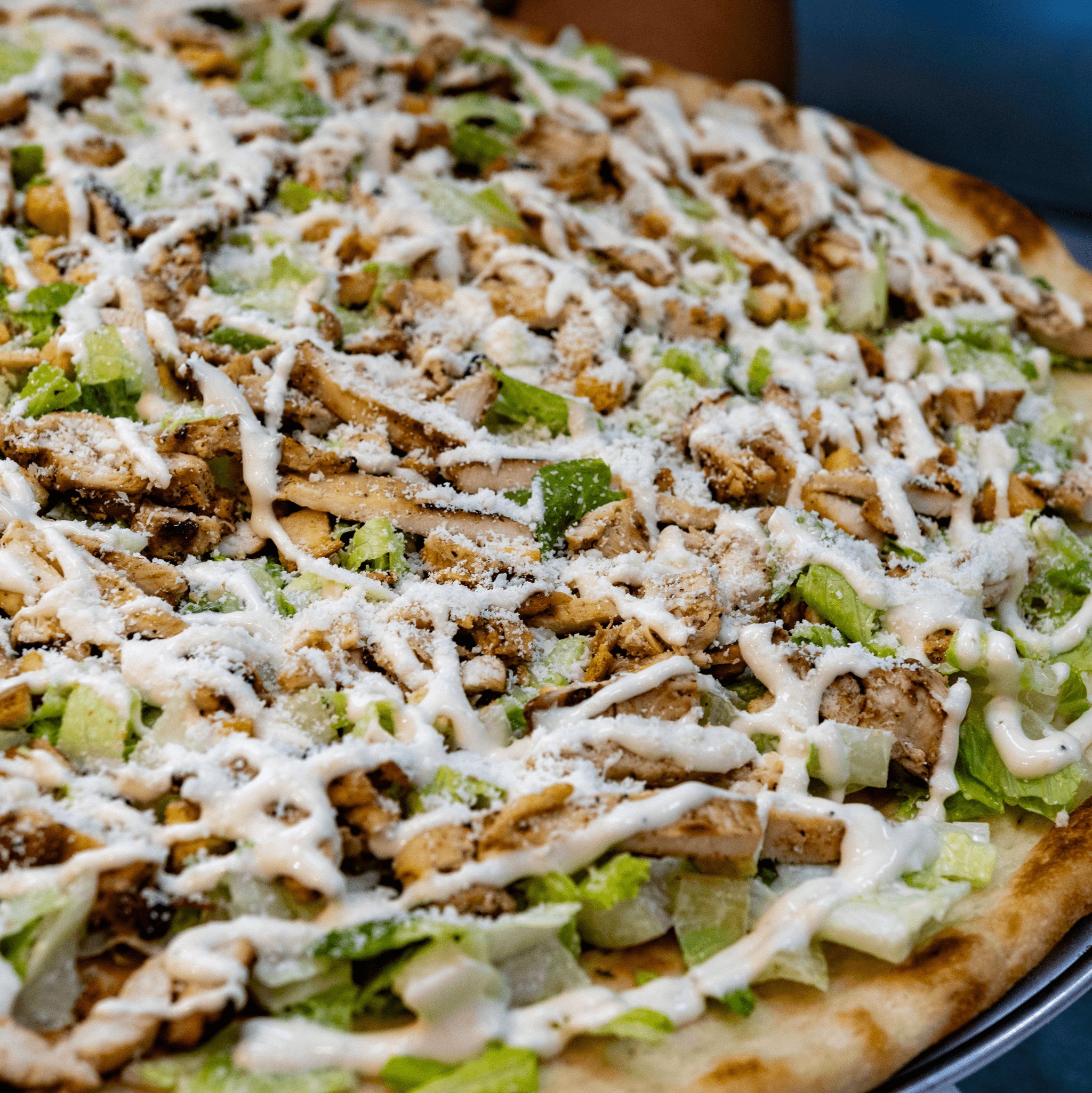 Caesar dressing, fresh mozzarella, tomato
